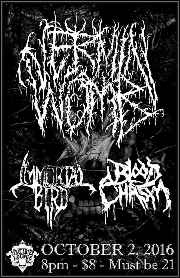 : Do not sleep on Blood Chasm. Their first show is 10.2.16 with Vermin Womb and Immortal Bird at 5th Quarter Lounge (21+).